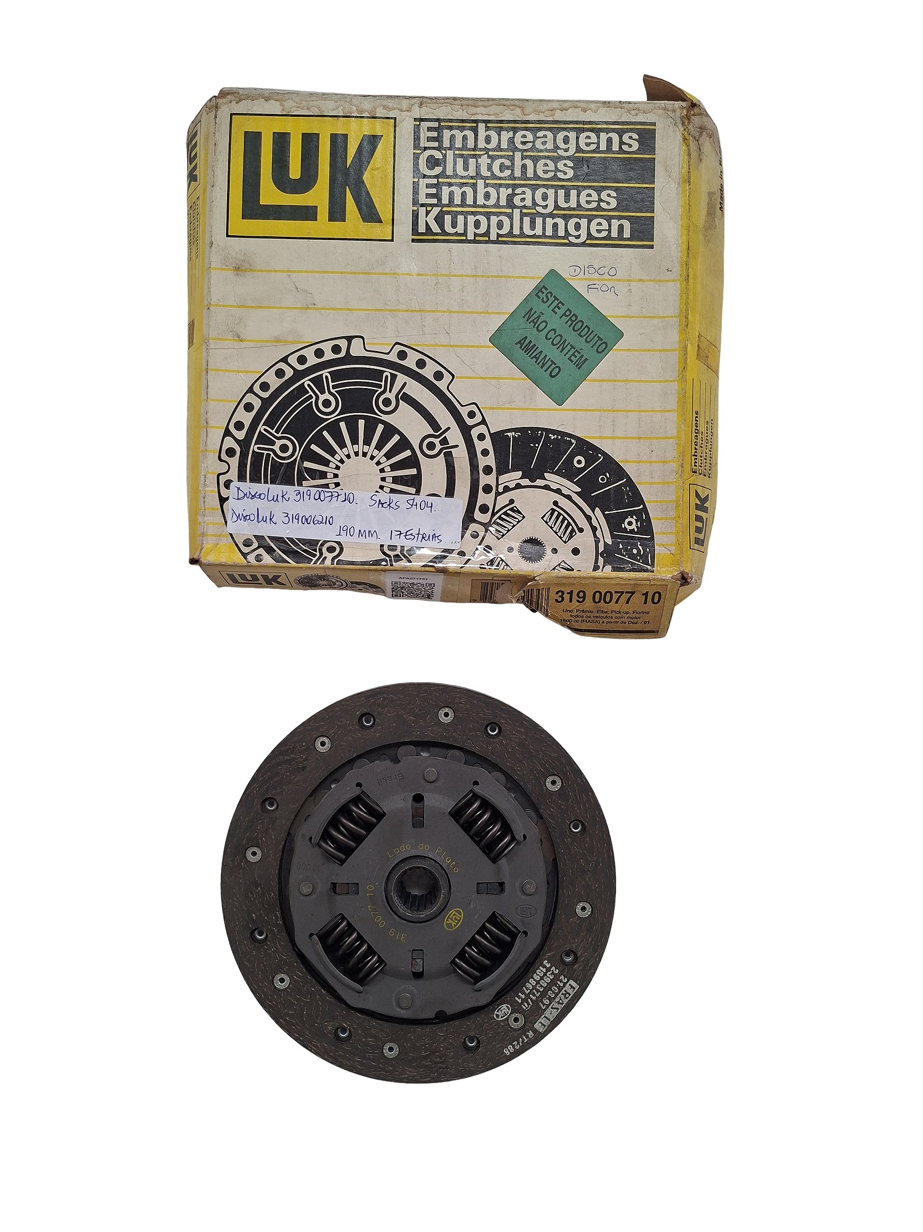 Disco Embreagem Fiat Uno Prêmio Elba Pick-up Fiorino 1500cc (FIASA) a partir 12/1991 190mm 17 estrias Luk 319007710
