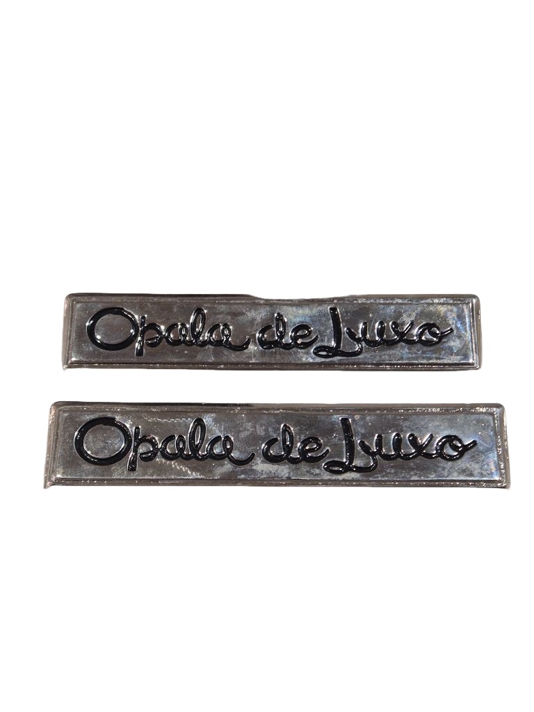 Par Emblema Placa Opala De Luxo Lateral Ferro Cromado Fixação Pino Com Rosca